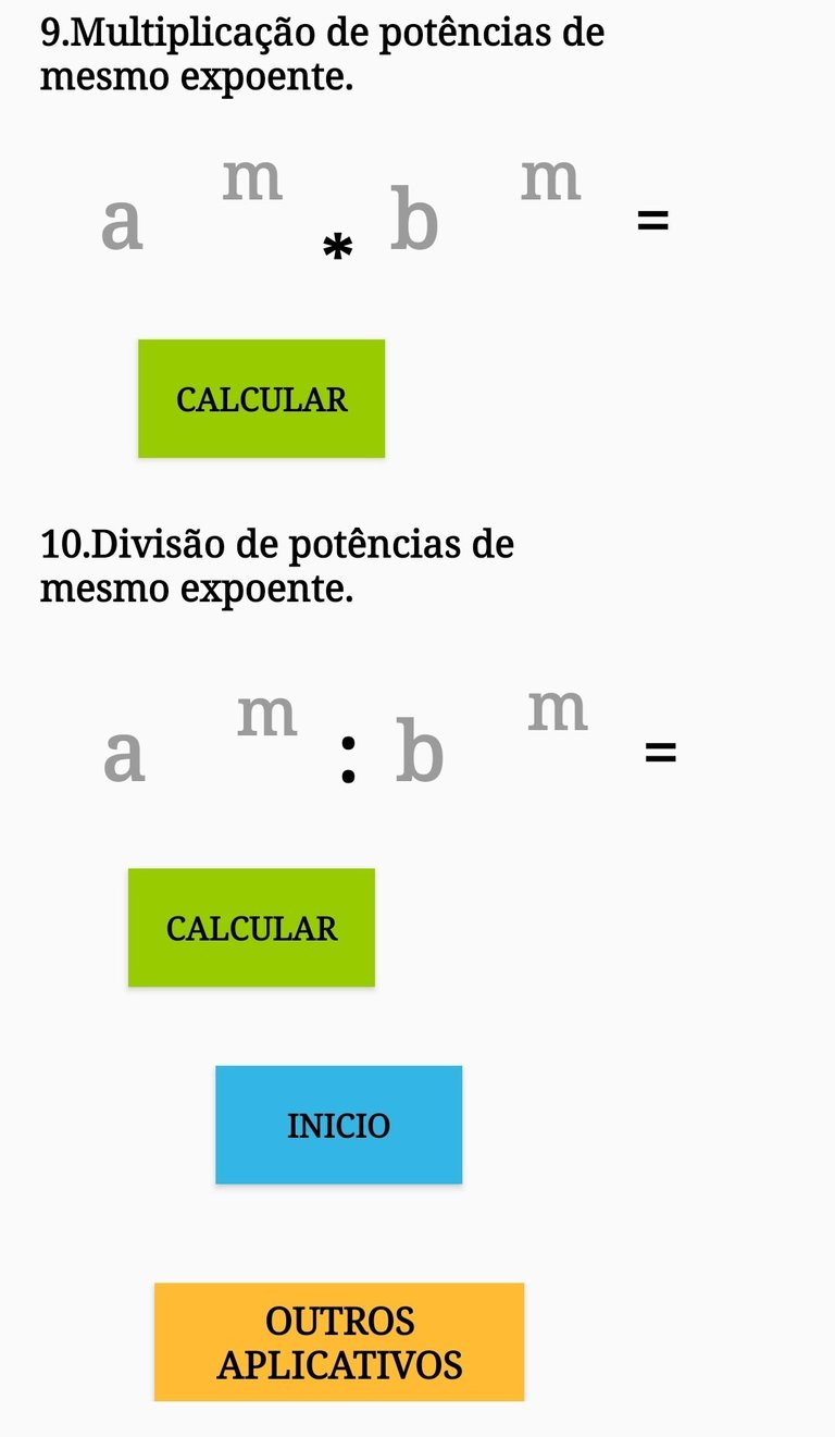 Imagens ilustrativas do Aplicativo de potenciação. Baixe o APK e estude!