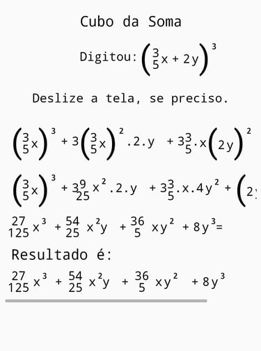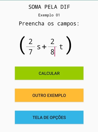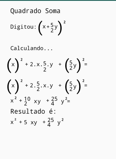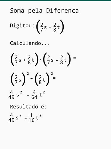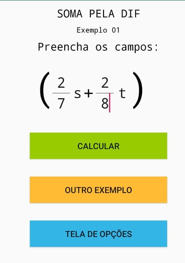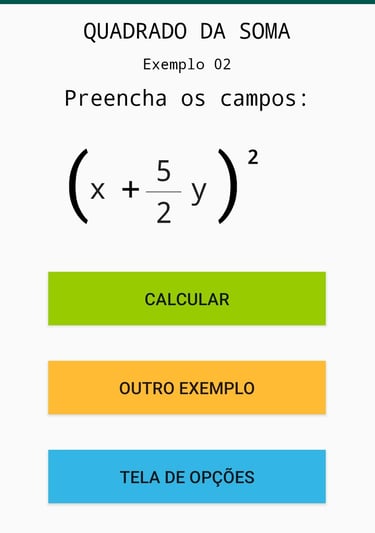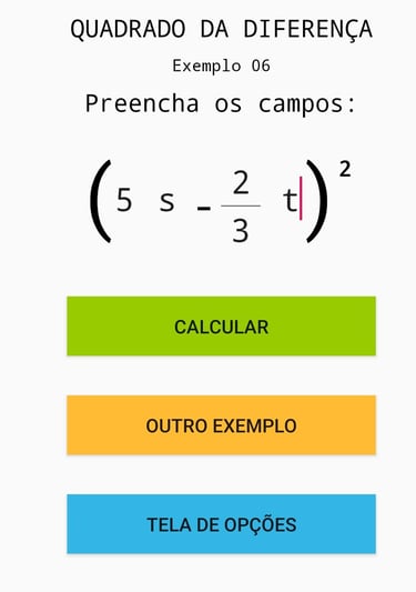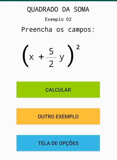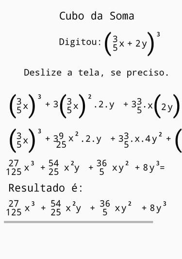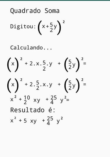 Imagens ilustrativas do Aplicativo de polinômios, envolvendo frações.